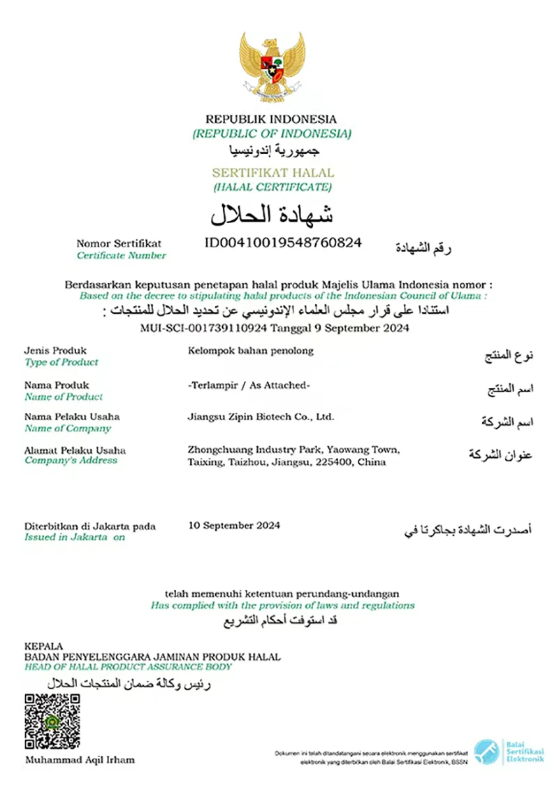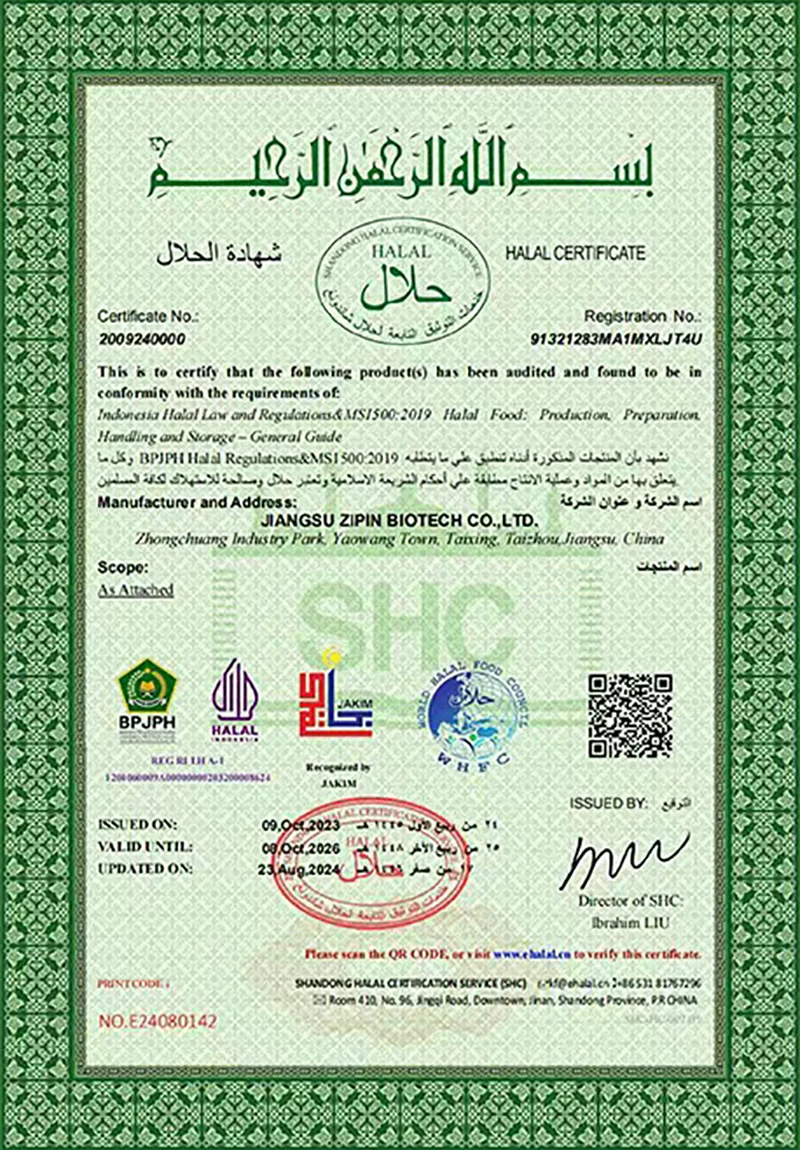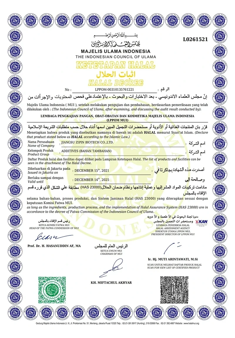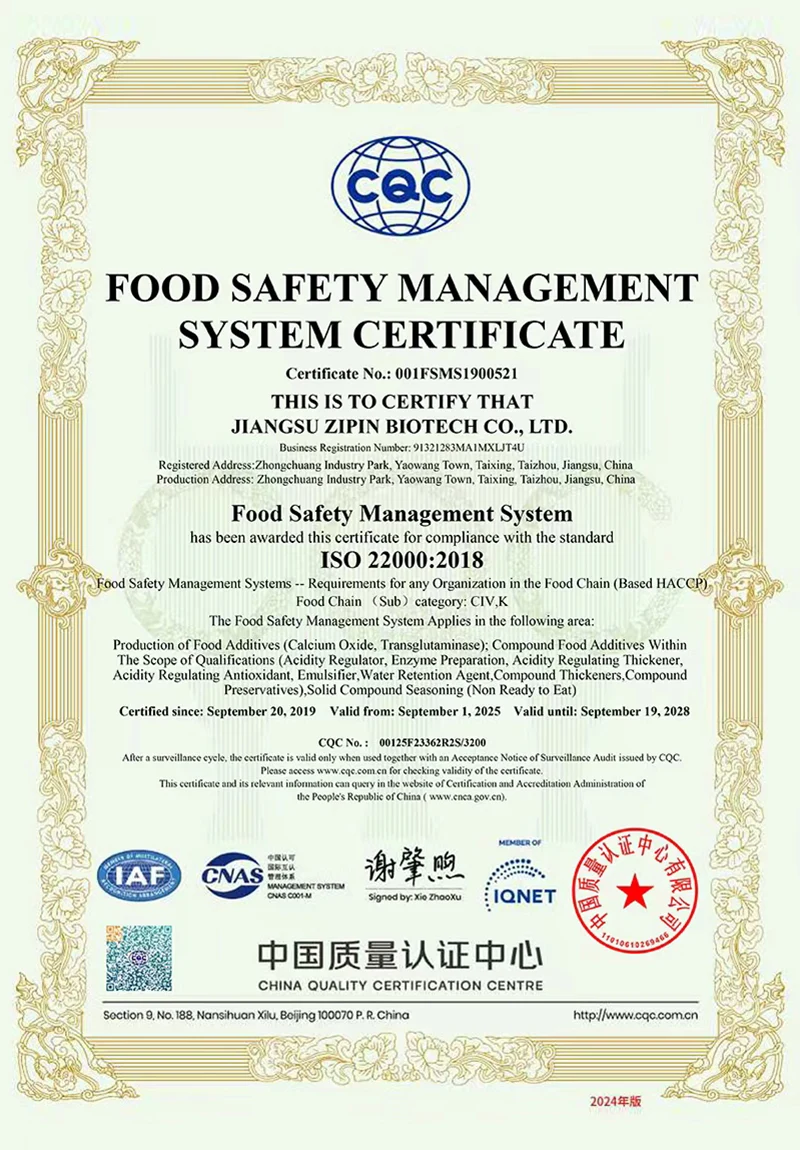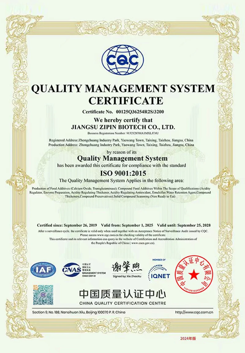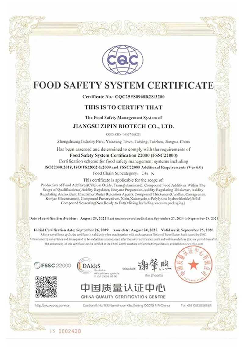 Jiangsu Zipin Biotech Co.,Ltd. grundades 2016 och täcker ett område på 20 000㎡. Som ett modernt privat företag är vi nu huvudsakligen engagerade i FoU, produktion och försäljning av livsmedelstillsatser. Våra huvudprodukter ärTransglutaminas, Curdlan, e-polylysin, Nisin, Natamycin och andra livsmedelstillsatser.